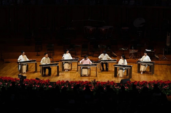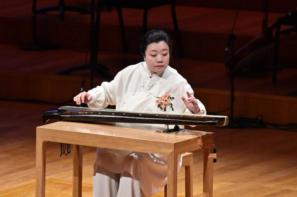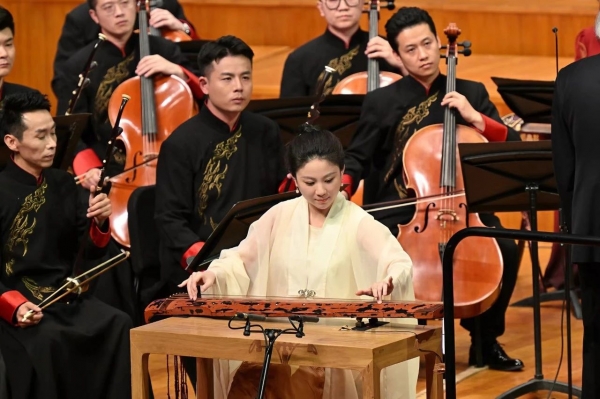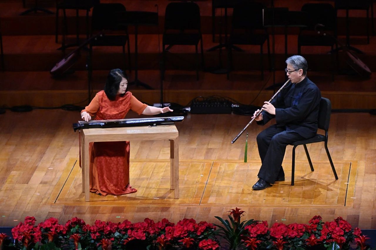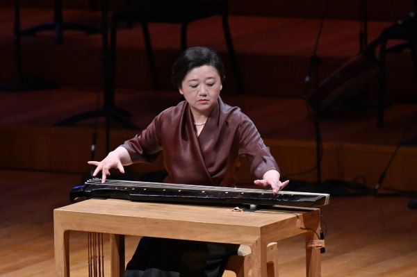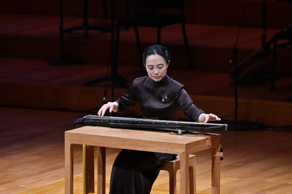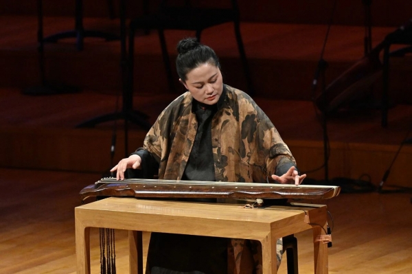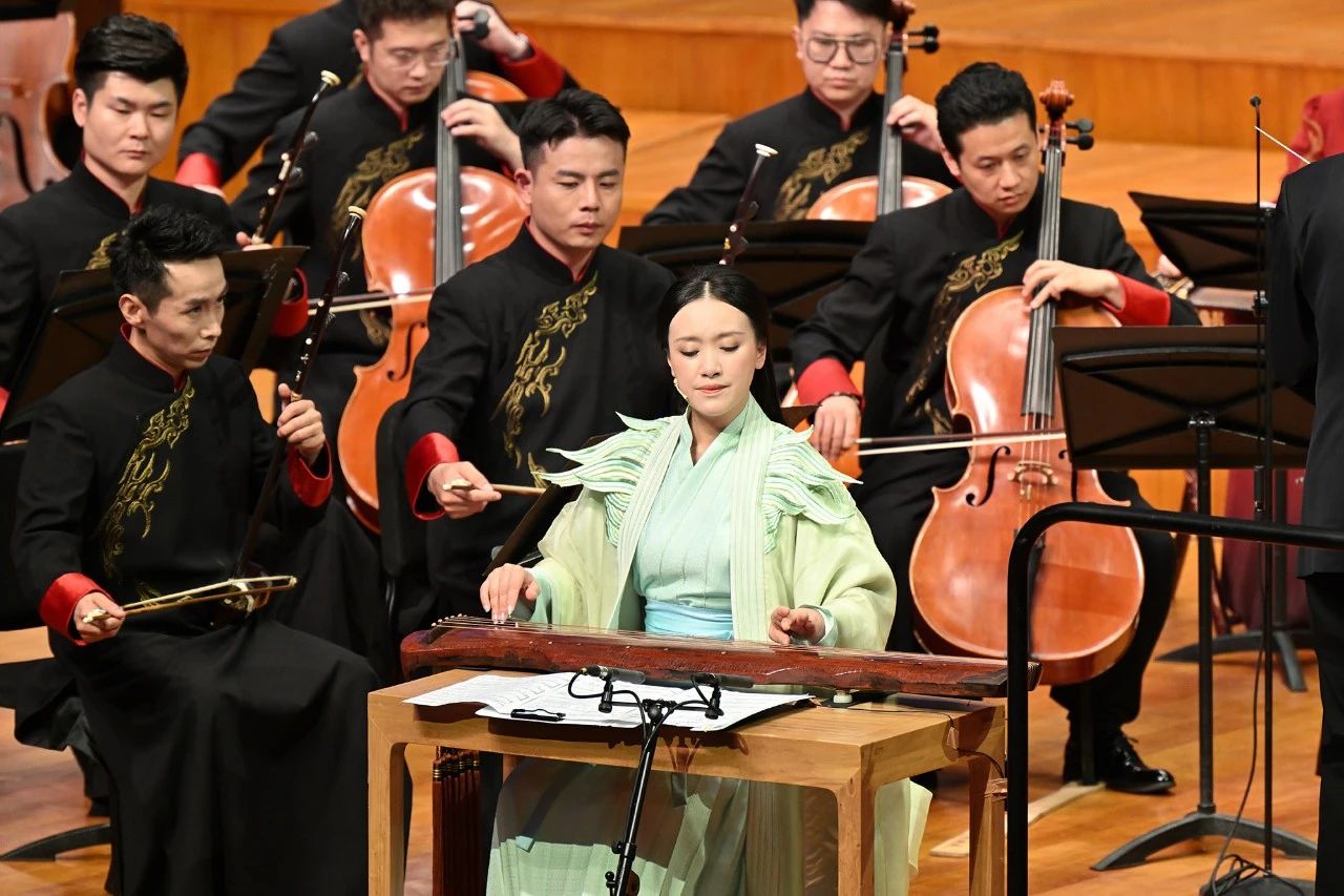 古琴演奏家杨致俭、路宁、赵晓霞、赵家珍、打击乐演奏家李聪农与中央民族乐团携手,以“古琴+室内乐”“古琴+民族管弦乐”的形式呈现了《秋鸿》《天地永乐中国节之重阳》《美人兮》《春风》,这些曲目不仅展示了古琴艺术的传承与发展,更体现了古琴与现代音乐的完美结合,展现着古琴艺术的时代创新精神与多元发展活力。