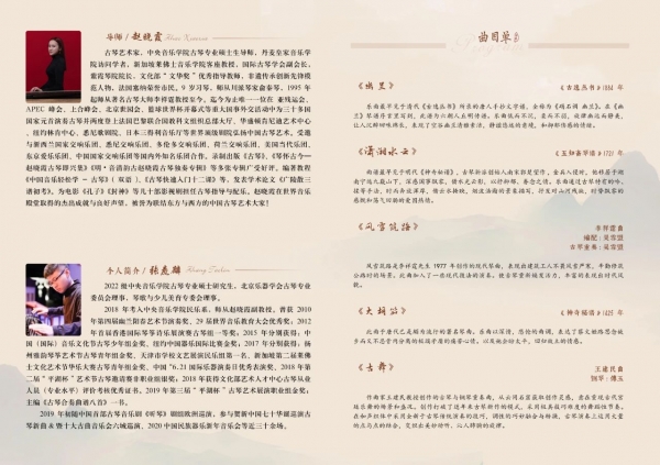 2019年初随中国首部古琴音乐剧《听琴》剧组欧洲巡演,参与贺新中国七十华诞巡演古琴新曲&暨十大古曲音乐会六城巡演、2020中国民族器乐新年音乐会等近三十余场。