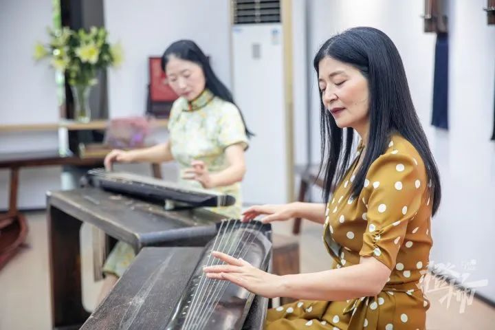 现在,霞影琴馆几乎每周有两个下午要去浙江省博物馆参与古琴公益演出,章怡青还推出了“琴至——古琴音乐进校园”系列活动、“宋韵琴声进万家”古琴音乐进企业、社区等系列活动,成立了章怡青浙派古琴传习馆,常态化举行赏析、讲座、传习等活动。