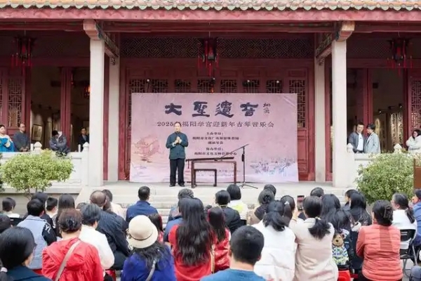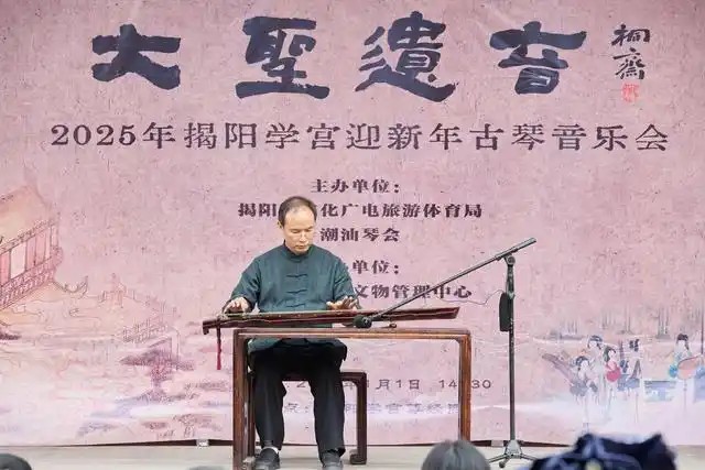 2025年元旦,由揭阳市文化广电旅游体育局和潮汕琴会主办,揭阳市文化文物管理中心协办的“大圣遗音”迎新年古琴音乐会在揭阳学宫尊经阁举办,古琴艺术非遗传承人林锐翰携手多名优秀琴家,以古琴艺术迎接新年,为市民和游客献上了一场琴韵悠扬的新年视听盛宴。