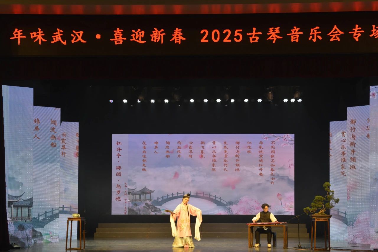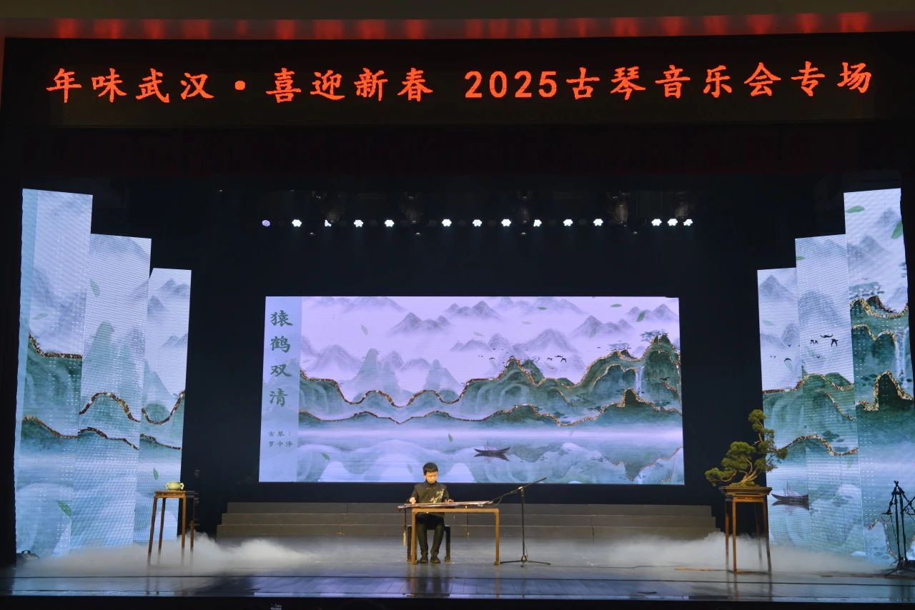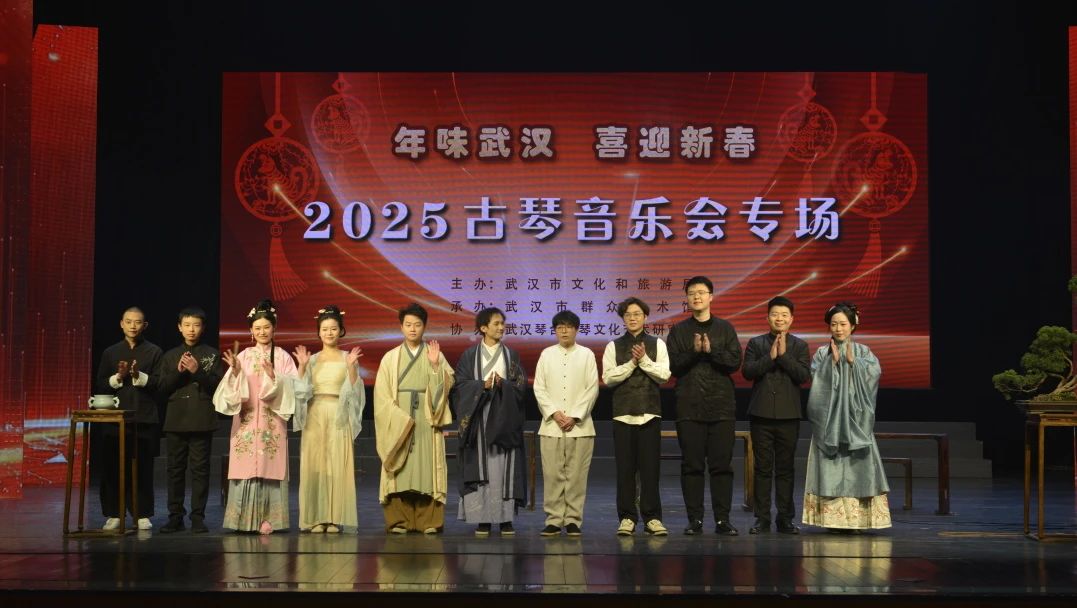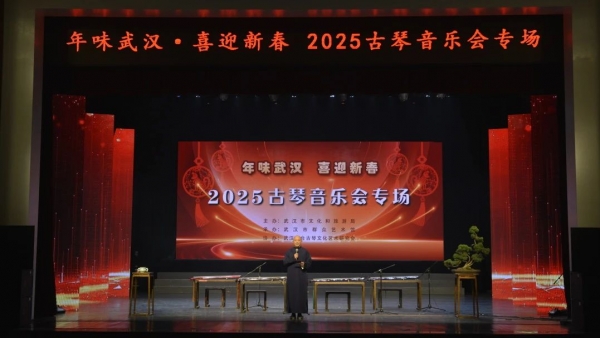 1月10日 下午14:30分,由武汉市文化和旅游局主办,武汉市群众艺术馆承办,武汉琴台古琴文化艺术研究会协办的《年味武汉·2025古琴音乐会》在武汉市群众艺术馆小剧场成功举办。