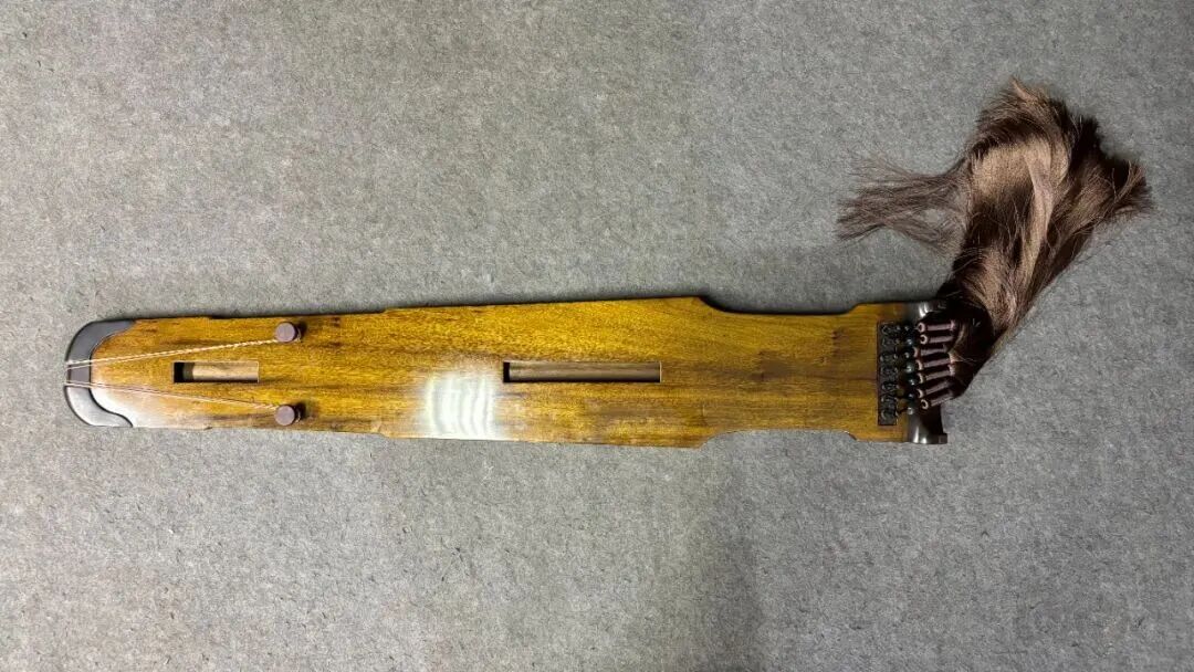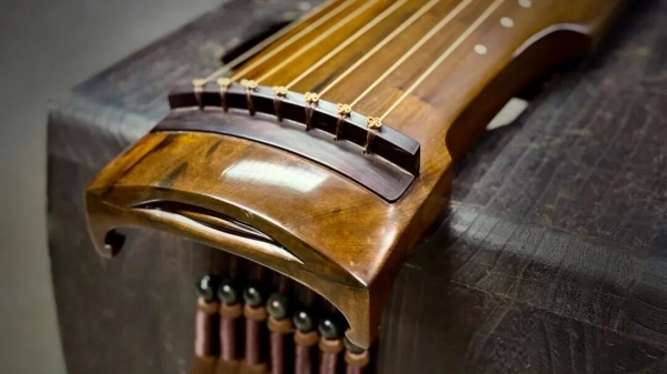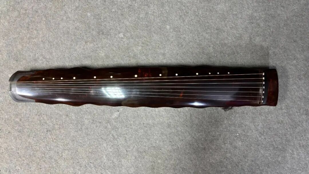 唐人御工坊斫琴师王玉鹏亲斫金丝楠木仲尼式古琴,木胎使用汉代金丝楠木,琴轸为和田碧玉、雁足为红木,音色通透洪松、余音悠长。