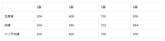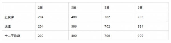 ▲三种律制的五声音阶的音高差别,源自《古琴进阶七十二问》