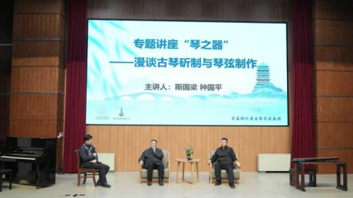 展演同期举办的两场专题讲座,为紧张的赛事注入了学术内涵。首场讲座以“琴之器——古琴制作与琴弦工艺的古今对话”为主题,特邀“琴在江南”创始人斯国梁与“经笥楼琴弦”负责人种国平联袂主讲。他们从选材、工艺到音色追求,细说斫琴与制弦的匠心传承,分享品牌背后的文化故事,并围绕当代斫琴、制弦技艺的发展与挑战,展开了富有深度的探讨。现场展示了不同年代、材质的琴与弦,听众得以近距离观摩触摸,提问环节气氛热烈。