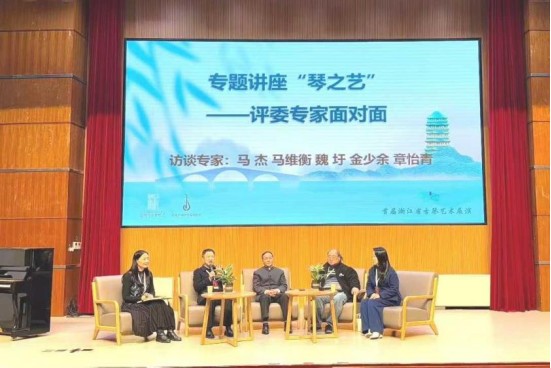 第二场“琴之艺——评委专家面对面”专题访谈,由本届大赛评委会主席章怡青、金少余主持,邀请马杰、马维衡、魏圩等多位评委专家坐镇。专家们结合白日赛场实况,肯定选手整体水平的同时,也精准指出了演奏中常见的节奏处理、音色控制、音乐表现等共性问题。他们以自身习琴、教学经历为例,娓娓道来,分享宝贵心得,为在场琴友指明了精进的方向。现场生动的开展了一堂大师课。