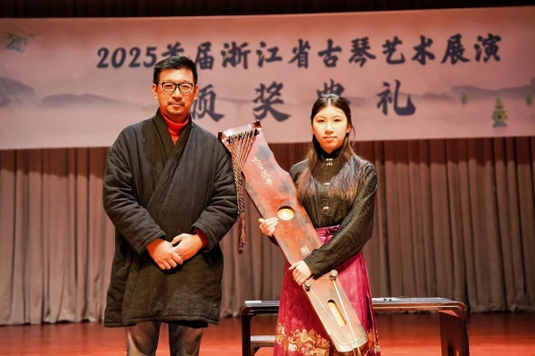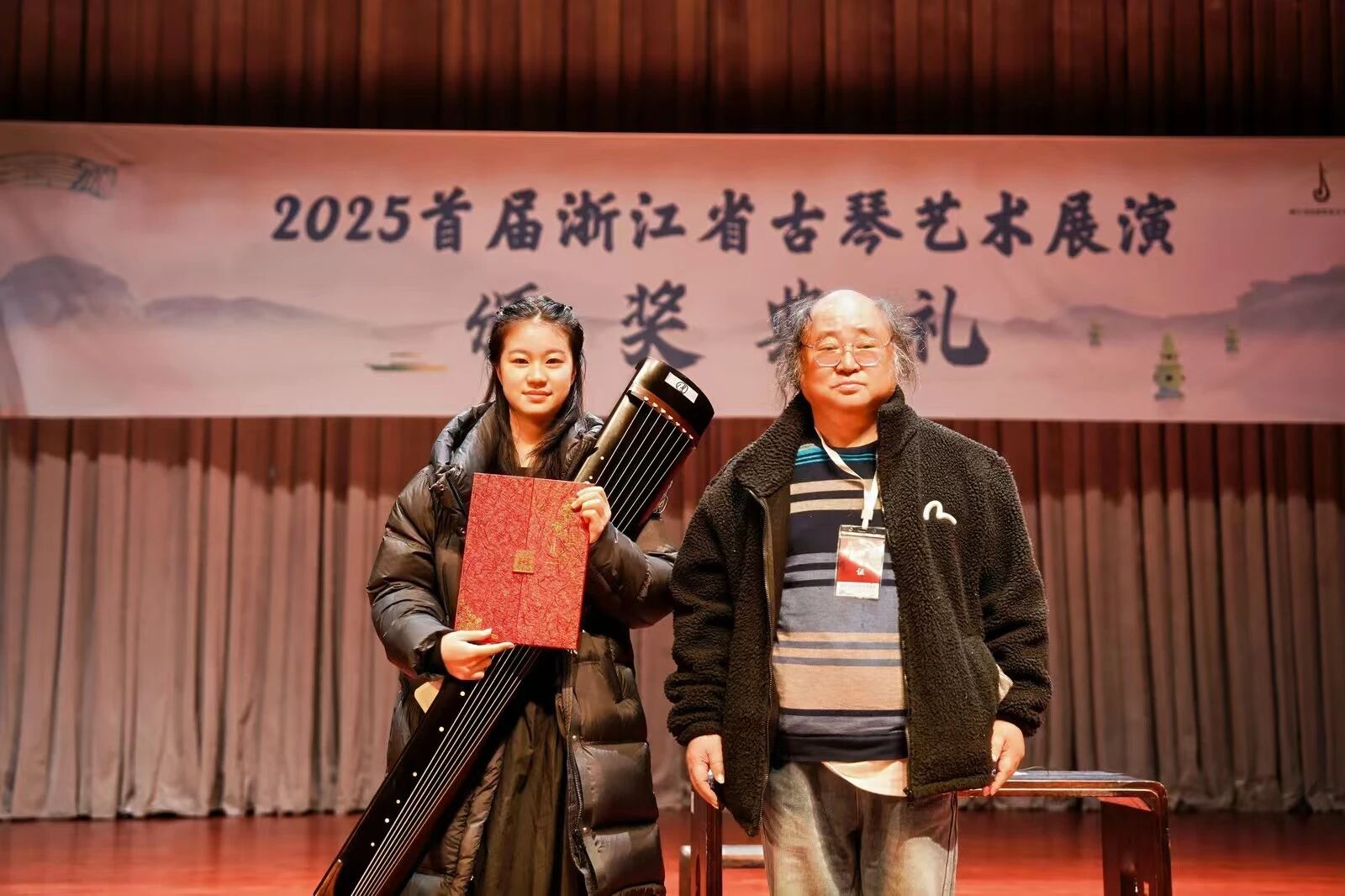 经过一整日紧张严谨的评审与细致的分数统计,本届展演各大奖项尘埃落定。颁奖典礼伊始,浙江省民族管弦乐学会古琴专业委员会会长章怡雯致辞,对本次活动进行了总结,并强调,古琴不仅是乐器,更是中华文化的精神载体,未来将继续搭建平台,推动古琴艺术在当代焕发新生。浙江省民族管弦乐学会秘书长吴樟华先生充分肯定了展演的组织工作和艺术成果,认为这展现了浙江古琴事业蓬勃发展、人才辈出的良好局面。他表示,古琴跨越三千年仍具生命力,学会将继续支持此类活动,并希望古琴工作者能深挖传统、勇于创新,让这门古老艺术在当代生活中绽放光彩。两篇致辞既总结了本届展演的成功,也展望了浙江古琴事业的未来。