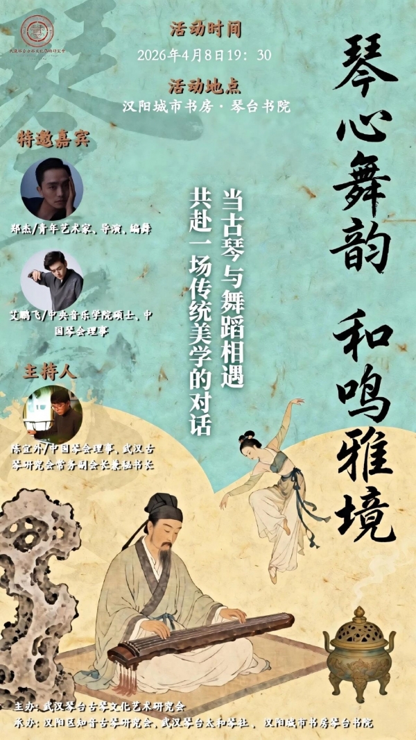 弦上清风起,舞间意韵生。当古琴的清越琴音穿越时空,与舞蹈的灵动身姿交织,一场以"琴心·舞韵"为主题的传统艺术美学对谈即将绽放华彩。
