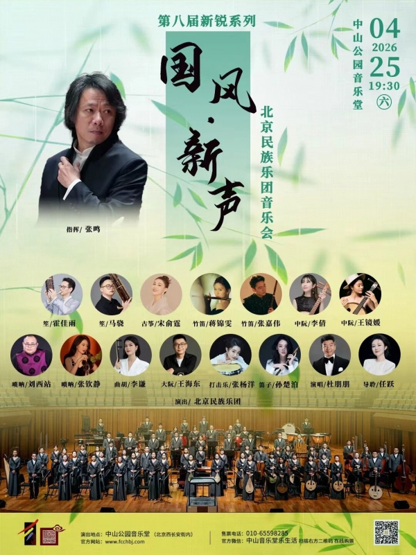 当四月的春色渐入佳境,一场关于青春与国乐的盛宴如约而至。第八届新锐系列《国风·新声》北京民族乐团音乐会将于2026年4月25日亮相中山公园音乐堂,正式拉开2026首文科“五月演出季”的序幕。