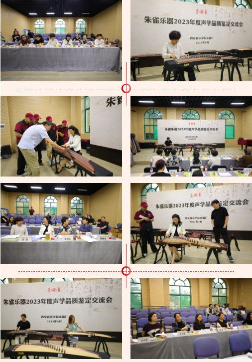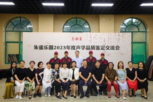 总展演期间,举办了“朱雀乐器2023年度声学品质鉴定交流会”。专家教授们亲自试奏、试听了20台朱雀各系列古筝,对各型号古筝声学品质进行品鉴及打分评定。今年上市的臻品系列--013产品获得评审团一致认可与高度评价,此筝获得品鉴会金奖。朱雀臻品系列012、011A、10B获得银奖、朱雀09、08、07、06系列部分产品获得铜奖。专家教授们一致认为,获奖产品音色过渡均衡、音色饱满,通透悠扬,极具演奏与收藏价值。