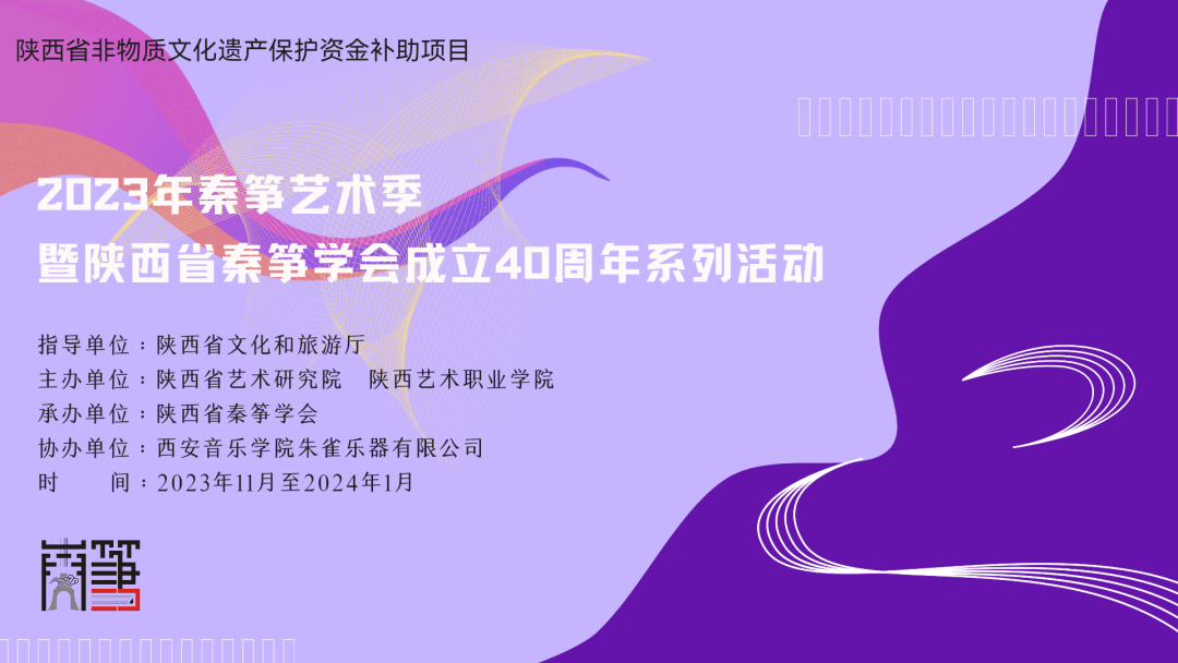 中华优秀传统文化是中华民族的精神命脉,民族音乐是其重要的组成部分。多年来,陕西省秦筝学会以传承弘扬秦筝艺术文化为己任,不断探寻秦筝的创新发展之路。在学会成立40周年之际,为进一步推进秦筝作为省级非物质文化遗产的传承与保护,促进民族音乐事业繁荣发展,实现中华优秀传统文化的创造性转化与创新性发展,陕西省秦筝学会将依托陕西省非物质文化遗产保护资金补助项目,于近期举办秦筝艺术季系列活动。
