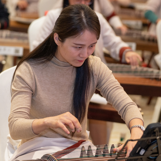 著名古筝演奏家、四川音乐学院江澹曦教授从演奏入手,梳理作品中的指法规范、难点部分音乐处理等,带动学员们高效提升古筝演奏技艺。