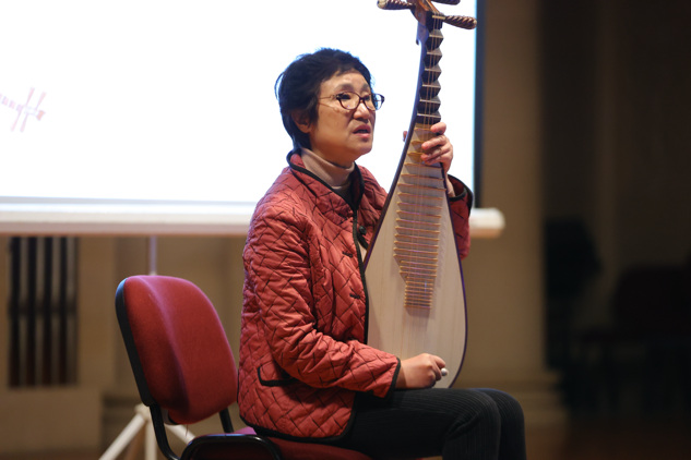 12月15日上午,中国艺术研究院教授、中国民族管弦乐学会会长吴玉霞教授以《我的舞台一演奏者的触点与立点》为题,在西安音乐学院学术厅展开第四场讲座。吴玉霞教授首先分享了自己对艺术美学的不断思考以及丰富实用的艺术实践经验,谈到了礼仪文化、声音美学、演奏心理以及遇到舞台突发事件的处理技巧,引导我们对表演艺术进行思考。其次,吴玉霞教授提到了“琴房空间”的重要性,并对“教学研、舞台表达”等方面作了深入的讲解。讲座最后,吴玉霞教授演奏了一首琵琶经典乐曲《春江花月夜》,她对音色的把控,对内在心灵的表达引起观众的深深共鸣,让大家充分感受到了技与艺的高度融合。