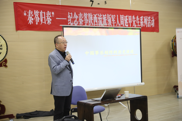 本次活动共包含六场讲座。12月13日上午,中央音乐学院教授、浙江音乐学院国乐系主任王甫建,在西安音乐学院学术厅(东二)开展的专题讲座《站在中国文化的立场谈新时期中国民族音乐的发展》,为“秦筝归秦”系列活动拉开了帷幕。王甫建教授从自己的学习经历讲起,站在中华传统文化的视角,从民族音乐创作、乐器改革、表演艺术几个维度讲述中国民族音乐在新时期的发展方向。他谈到,中国传统音乐之美,源于传统文化的情怀,对传统文化的审美要求,贯穿了中华民族传统哲学。我们应怀着对当代民族音乐发展的反思与展望,为新时期中国民族音乐艺术的诠释打开新思路、开创新局面。