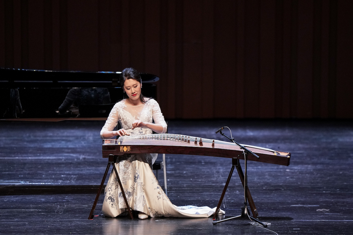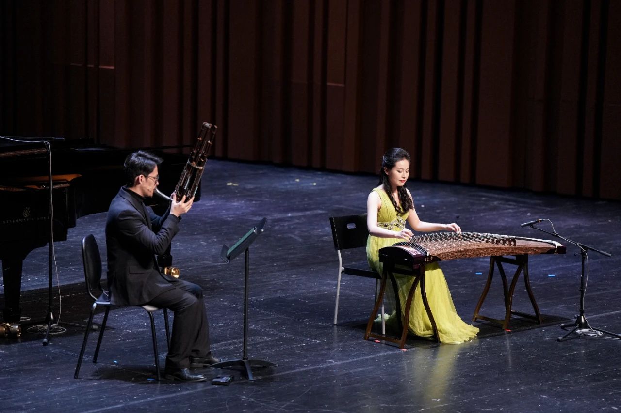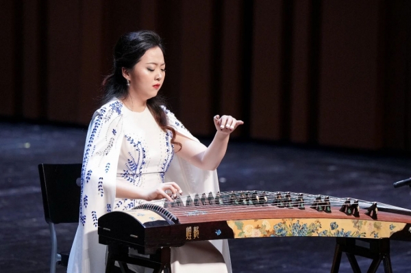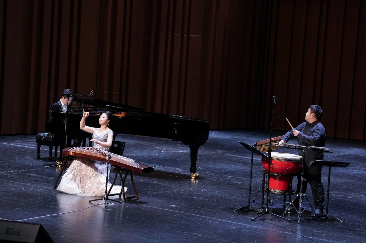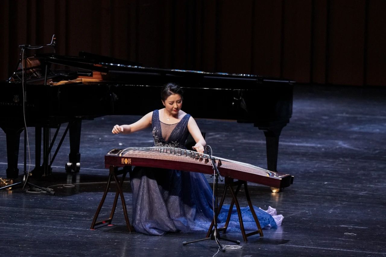 音乐会在青年古筝演奏家关琳演奏的《江南》中拉开帷幕,该曲是著名作曲家顾冠仁先生2019年应陕西秦筝学会委约创作,作品根据汉代乐府诗改编成曲,全曲描写了一副秀美的江南景色,乐曲清新、明快、活泼、灵动,充满勃勃生机、青春活力,勾勒出一幅生动、明丽的画面。听众们深刻感知到采莲人内心的愉悦和青年男女的纯洁爱恋之情。