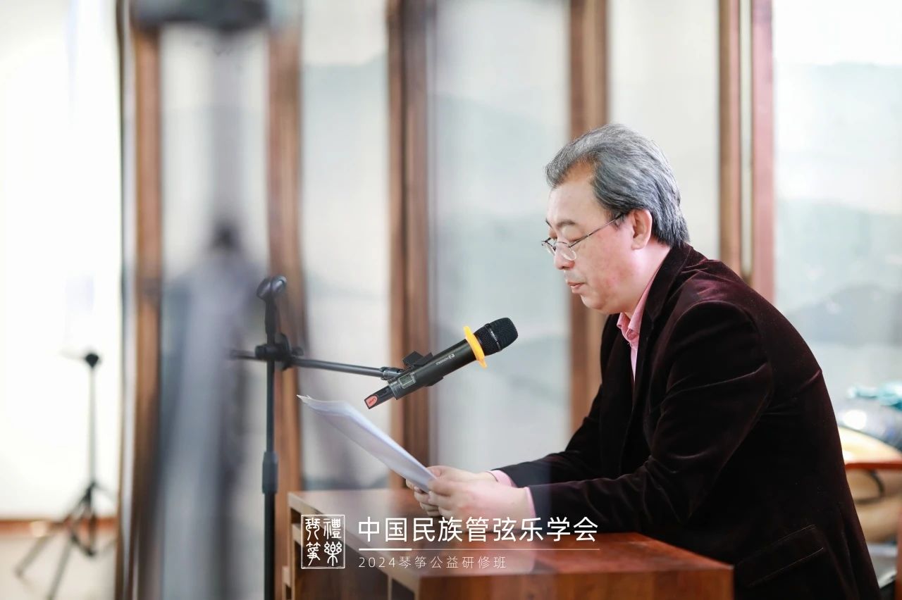 著名作曲家、中国民族管弦乐学会副会长兼秘书长赵东升在致辞中讲到,古琴作为中国最古老的弹拨乐器之一,不仅承载着深厚的文化意蕴,更是中华民族音乐艺术文化的瑰宝。它以其独特的音色、丰富的表现力和悠久的历史传统,成为了连接古今、沟通心灵的桥梁。在快节奏的现代生活中,学习古琴,不仅是对一项传统技艺的传承,更是一种精神的修养与回归。愿每一位学员都能在接下来的时间里收获满满,不仅在琴艺上有所成就,更能在心灵的旅途中寻找到属于自己的那份宁静与和谐。