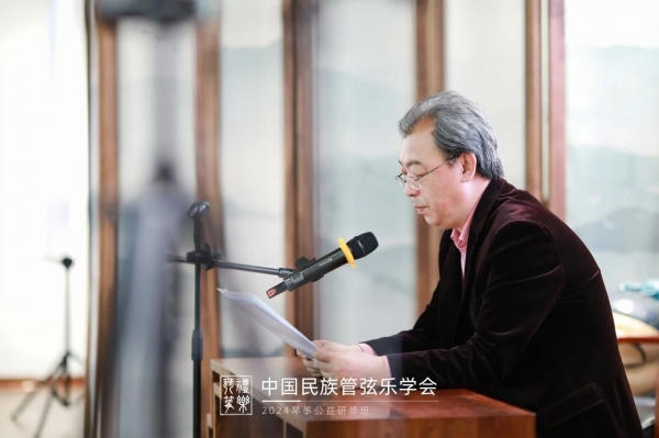 开班仪式上,中国民族管弦乐学会副会长兼秘书长赵东升为研修班致辞,祝贺研修班圆满举办,希望大家通过研修学习取得理论与实践上的双重收获,并希望学员通过活动进一步坚定信念、弘扬正气、努力赓续中华文脉。