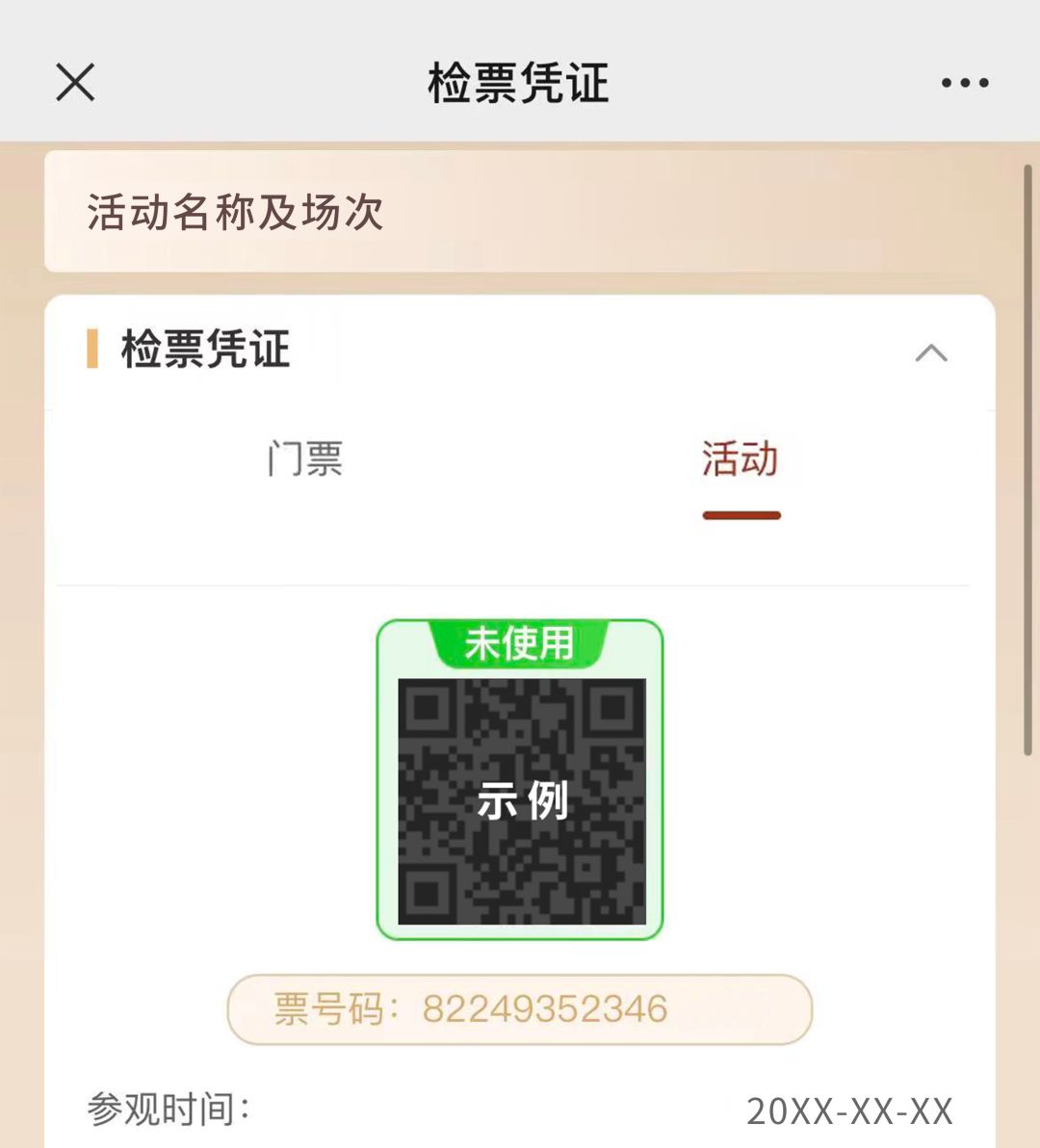 2.成功完成“活动报名”,将同时生成门票二维码和活动二维码;入馆经东门安检后,打开门票二维码或持本人身份证原件通过闸机入馆。