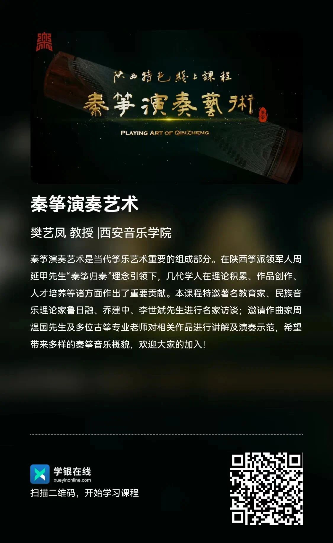 樊艺凤教授主持陕西省特色线上课程《秦筝演奏艺术》正式上线