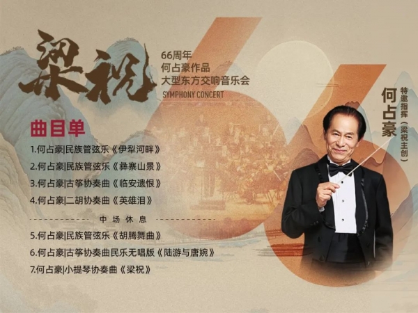 由何占豪音乐艺术传承中心与U剧场联合策划的“六六弦歌,何乐传情”系列,于2025年3月开启年度首演。演出特别邀请梁祝作曲家何占豪老师亲自执棒,携各优秀乐团、独奏家共同展现经典之作。
