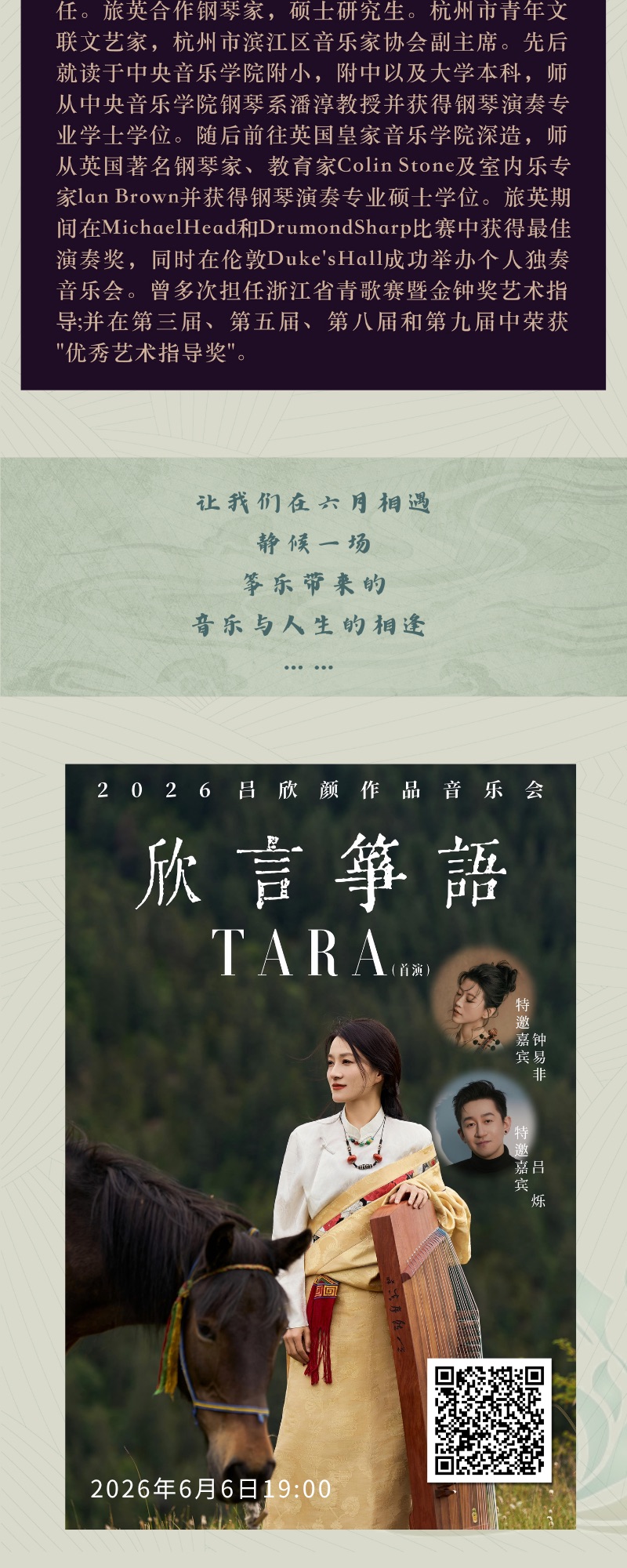 【演出推荐】欣言筝语——2026吕欣颜古筝作品音乐会现已开票!静候一场音乐与人生的相逢