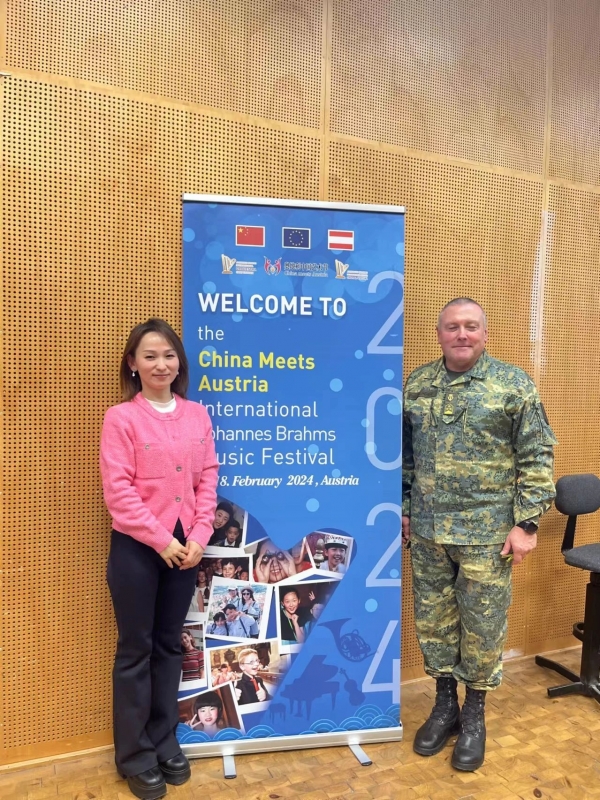 北京葫芦丝巴乌协会理事韩莎莎与上校 伯恩哈德·海赫尔教授合影