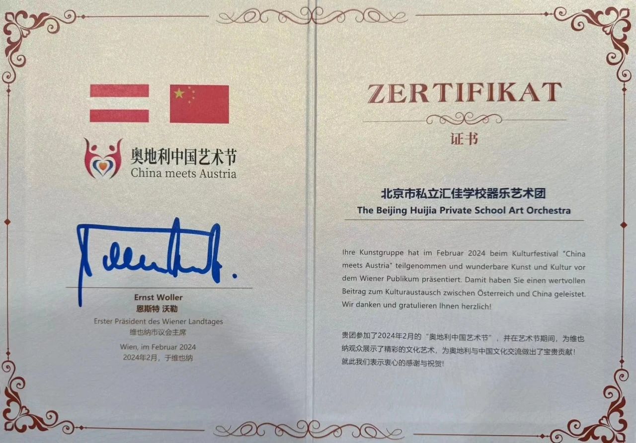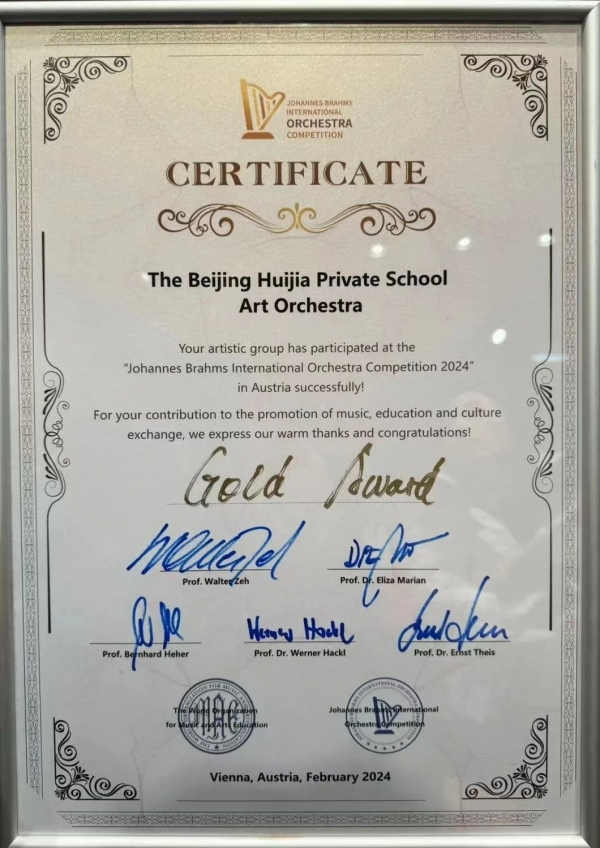 2024欧洲艺术节-勃拉姆斯音乐比赛是由奥地利米尔茨市政府和世界音乐艺术教育协会共同主办,在维也纳金色大厅举行。这是一场高规格、高标准、高平台的国际水准乐团比赛,共设立金、银、铜奖项。此次比赛的专家评委团队来自于国际知名指挥家、教育家、音乐家:艾丽莎·马里安博士、上校伯恩哈德·海赫尔教授、维尔纳·哈克尔教授、瓦尔特·采恩教授以及恩斯特·泰斯教授。这些评委均在音乐届享有盛誉,他们凭借自身丰富的音乐知识和经验为本届勃拉姆斯国际音乐的参赛作品进行专业的点评和评分。同时参赛方共有来自于不同国家地域的七个乐团,韩莎莎老师带领的器乐艺术团在勃拉姆斯音乐比赛中荣获金奖!
