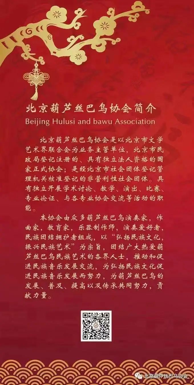 习总书记说,要“用情用力讲好中国故事,向世界展现可信、可爱、可敬的中国形象”。北京葫芦丝巴乌协会一直以来团结全世界葫芦丝巴乌爱好者,努力推动中国优秀文化“走出去”。弘扬民族精神、彰显民族自信,让葫芦丝巴乌优美的旋律奏响全世界。