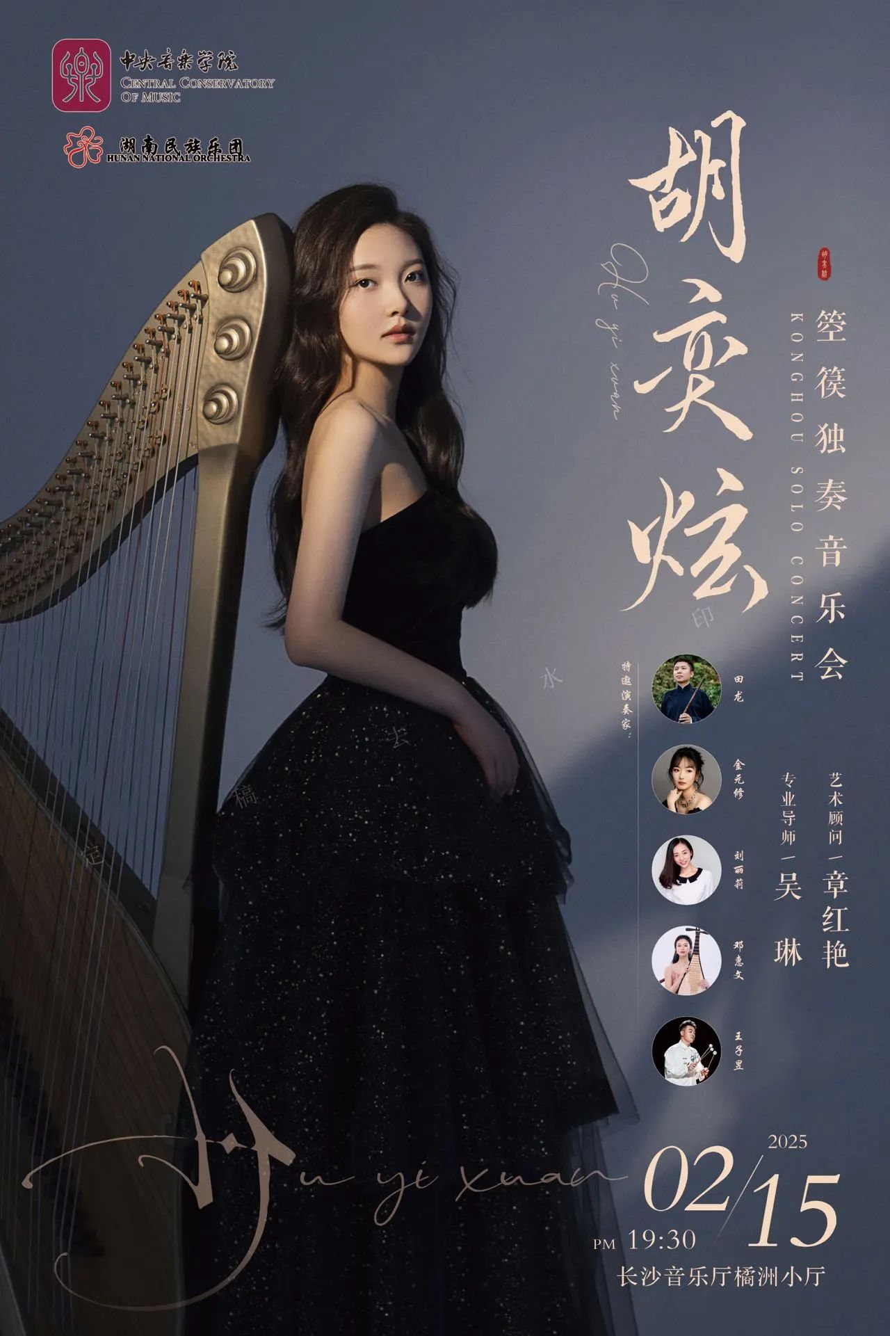 2月15日,一场别开生面的独奏音乐会在长沙音乐厅橘洲小厅拉开帷幕。来自中央音乐学院民乐系箜篌专业本科二年级的学生胡奕炫,为长沙的父老乡亲们献上了一场千年乐器的华丽演出。