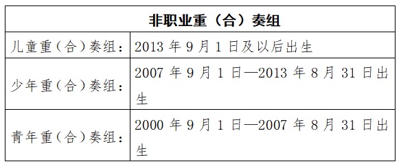 注:重(合)奏组合按队内年龄最大者所在组别划分。
