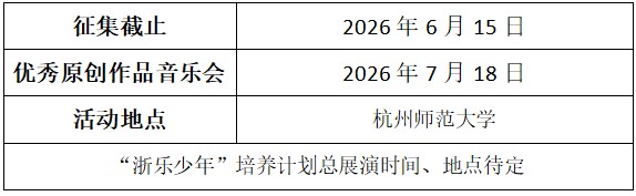 总展演:评委会将从各专场音乐会中遴选出优秀节目参加“浙乐少年”培养计划总展演。