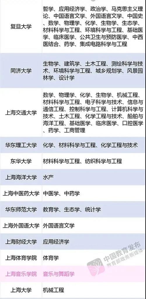 上海音乐学院“音乐与舞蹈学”继首轮入选国家“双一流”后再次获批第二轮国家“双一流”建设高校及建设学科。