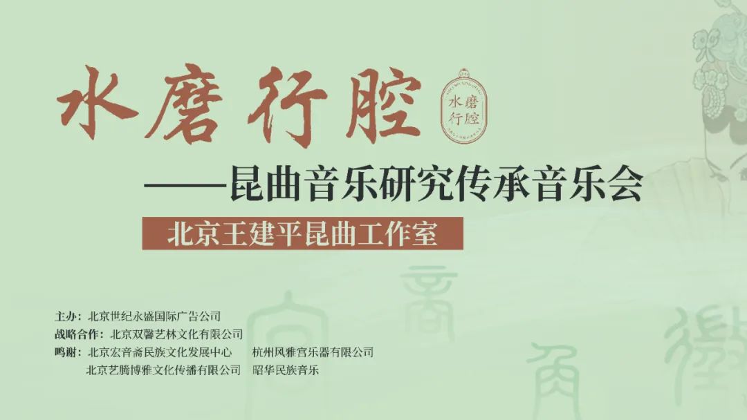 《水磨行腔——昆曲音乐研究传承音乐会》是北京王建平昆曲工作室多年来在不断地探索、研究和改革基础上,创作的首场成果展示音乐会,本场音乐会汇集昆曲“南北”唱腔曲牌与器乐曲牌,既有原汁原味的昆曲音乐和曲牌联套,也有改编、创作的昆曲风格独奏、重奏作品,充分体现了昆曲“依字行腔”“中正平和”的音乐特点。