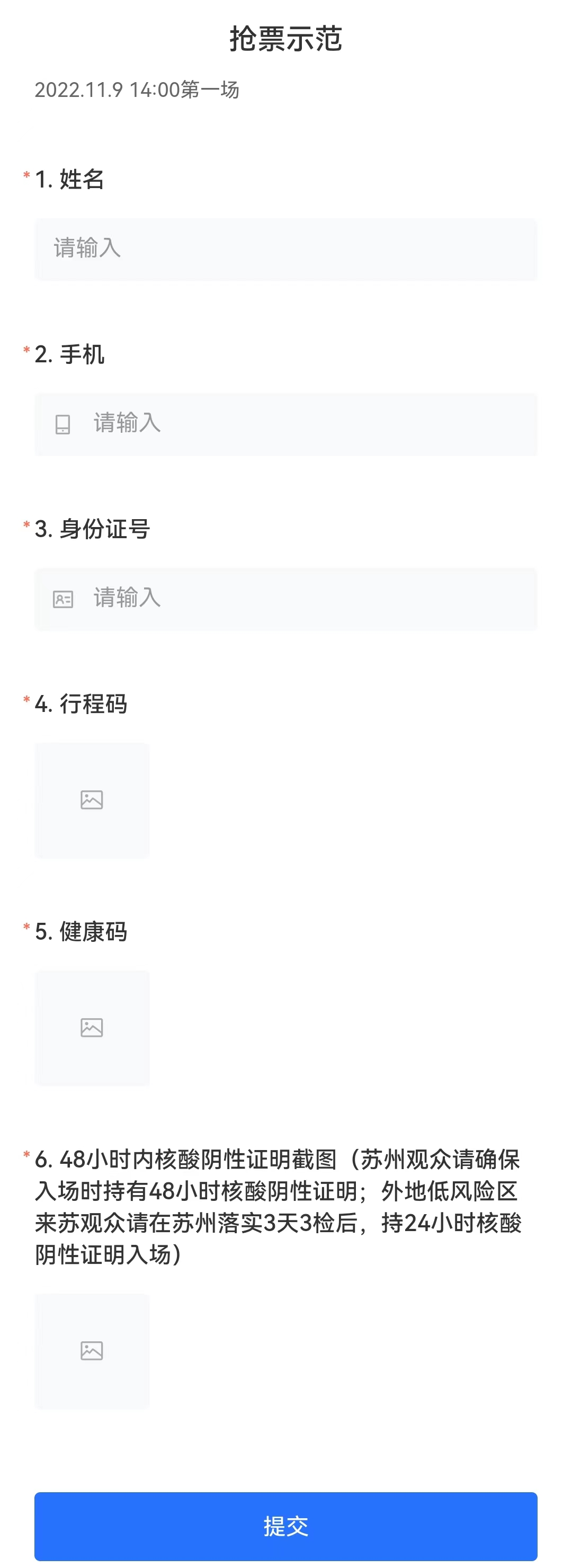 ●根据苏州市疫情防控要求,对所有进入剧院的人员进行场所码扫码登记,出示48小时内核酸检测阴性证明,测量体温,正确佩戴口罩并出示当日申领的“健康码”“行程码”,各项均未见异常(行程卡显示7天内有苏州外其他城市旅居史的观众需查验三天之内三次核酸检测阴性证明(间隔24小时);观演前可通过“国务院客户端”微信小程序查询地区疫情风险等级)方可进入剧院观演;