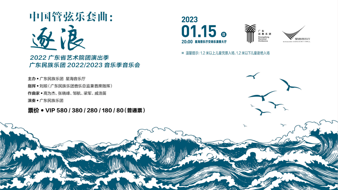 1月15日(本周日晚)20时,广东民族乐团2022/2023音乐季音乐会,入选文旅部“时代交响”创作扶持计划:中国管弦乐套曲“逐浪” 将在星海音乐厅隆重上演。