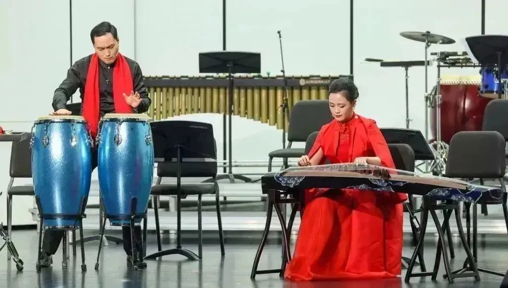 一系列重奏作品带领观众们感受海派民乐的当代气质。古筝与打击乐《绽放》由乐团古筝演奏家陆莎莎、打击乐声部首席王音睿共同演绎,作品融合古典与现代音乐元素,用音乐赞美如莲花般绽放的生命,更展现新春的蓬勃和朝气。