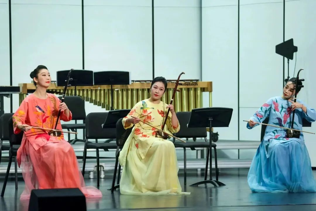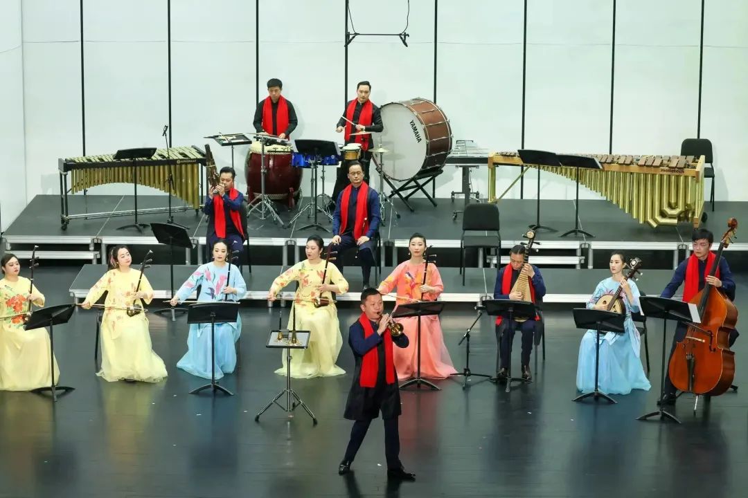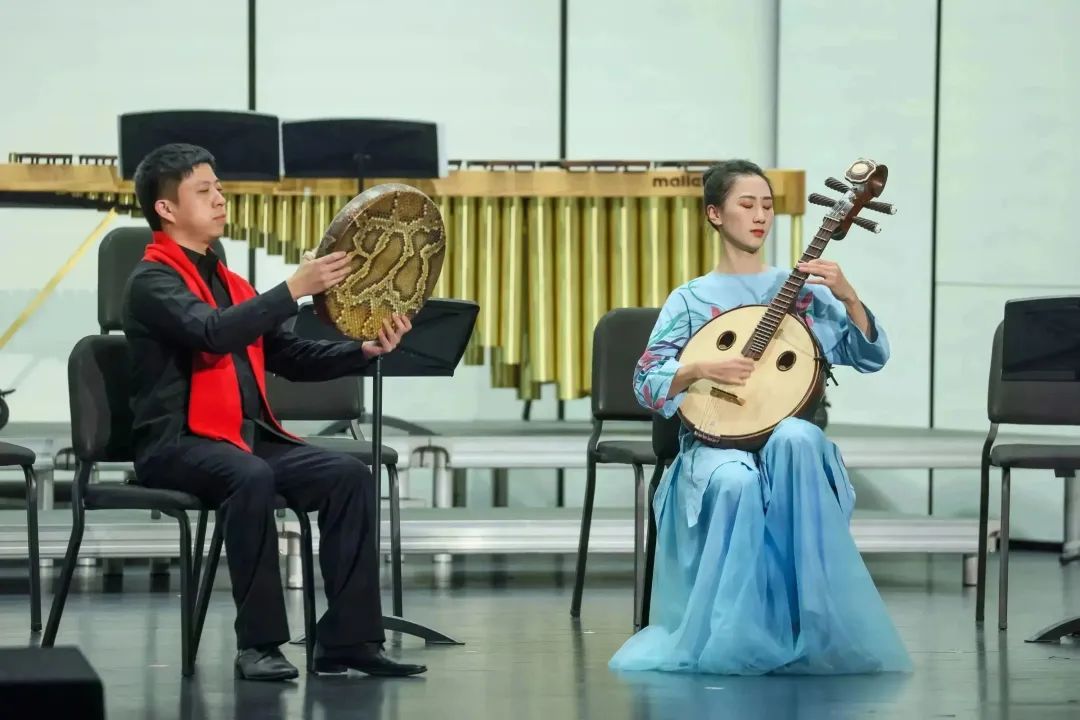 乐团演奏家赵臻、应怡婷、凌檬、王音睿、李晨晓共同演绎的 器乐重奏《蜂飞》,唢呐演奏家胡晨韵与小乐队带来的《凤舞》,通过热烈奔放的旋律表演,展现传统民族乐器与现代音乐元素的融合创新。