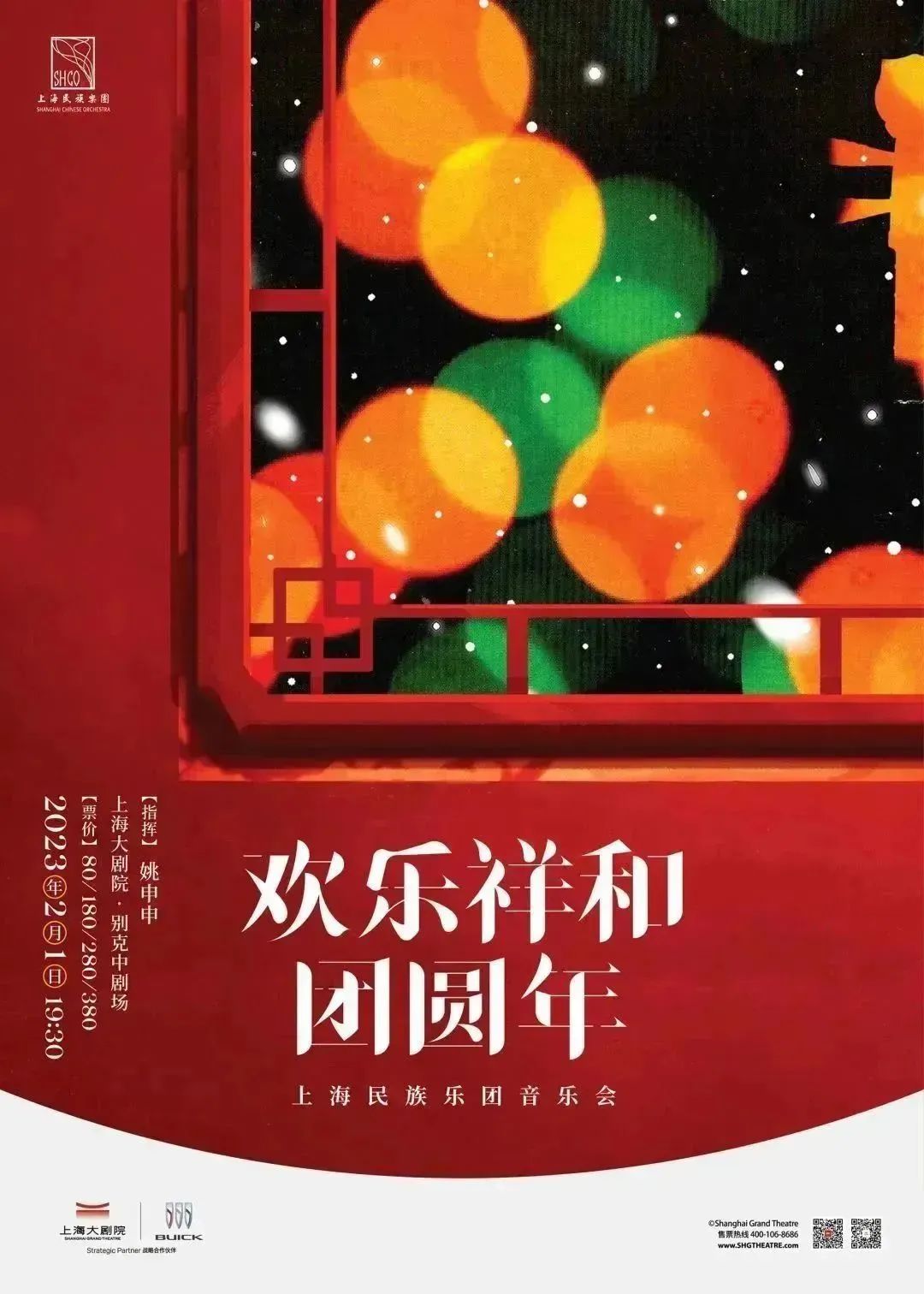 正月十一(2月1日) 元宵音乐会《欢乐祥和团圆年》 在上海大剧院·别克中剧场精彩继续!多元交融的海派民乐将传递欢聚团圆、温馨祥和的新年气象,敬请关注!