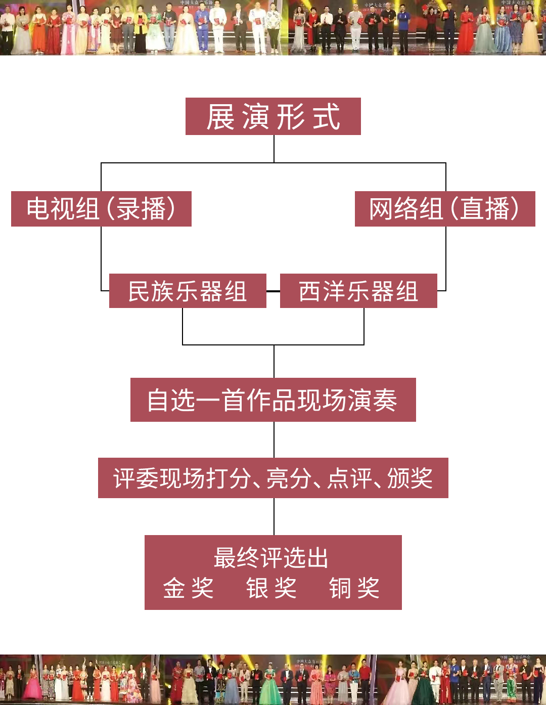 器乐演奏是表达音乐艺术的载体,是民族性、艺术性、欣赏性、创新性多维度表现的形式,为了促进器乐事业的繁荣发展,给器乐工作者或爱好者搭建学习交流、宣传展示的平台,由“中国大众音乐协会”主办,感动中国群众文化艺术周组委会、北京华艺之声文化艺术中心承办的“器乐中国‘华星杯’器乐电视网络展演”活动,将于3月底,在北京星光演播厅举行现场展演,本次活动面向全国艺术类高等院校、艺术机构、社会团体、群艺馆、文化馆等单位征集报名,欢迎大家积极推介参与。