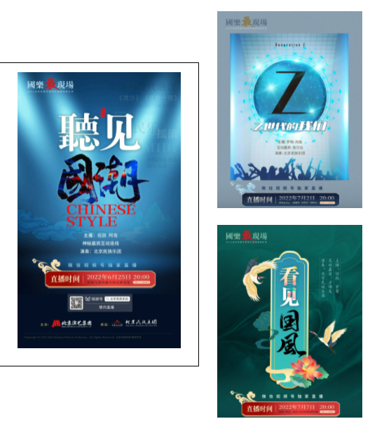 2月27日晚八点,集团旗下北京民族乐团“国乐府”虚拟音乐厅联合抖音平台共同推出《听见国潮》音乐会,正式启动常态化抖音线上直播,打造全年龄段的时尚国乐基地,高颜值的演奏员们不仅演绎风格多样的国乐作品,还会和直播间的观众们实时“聊天”。