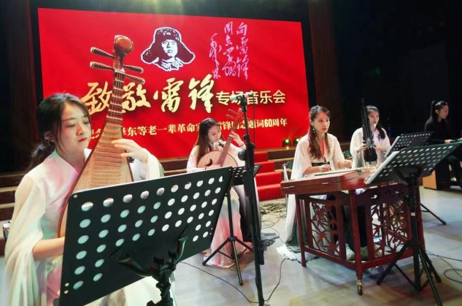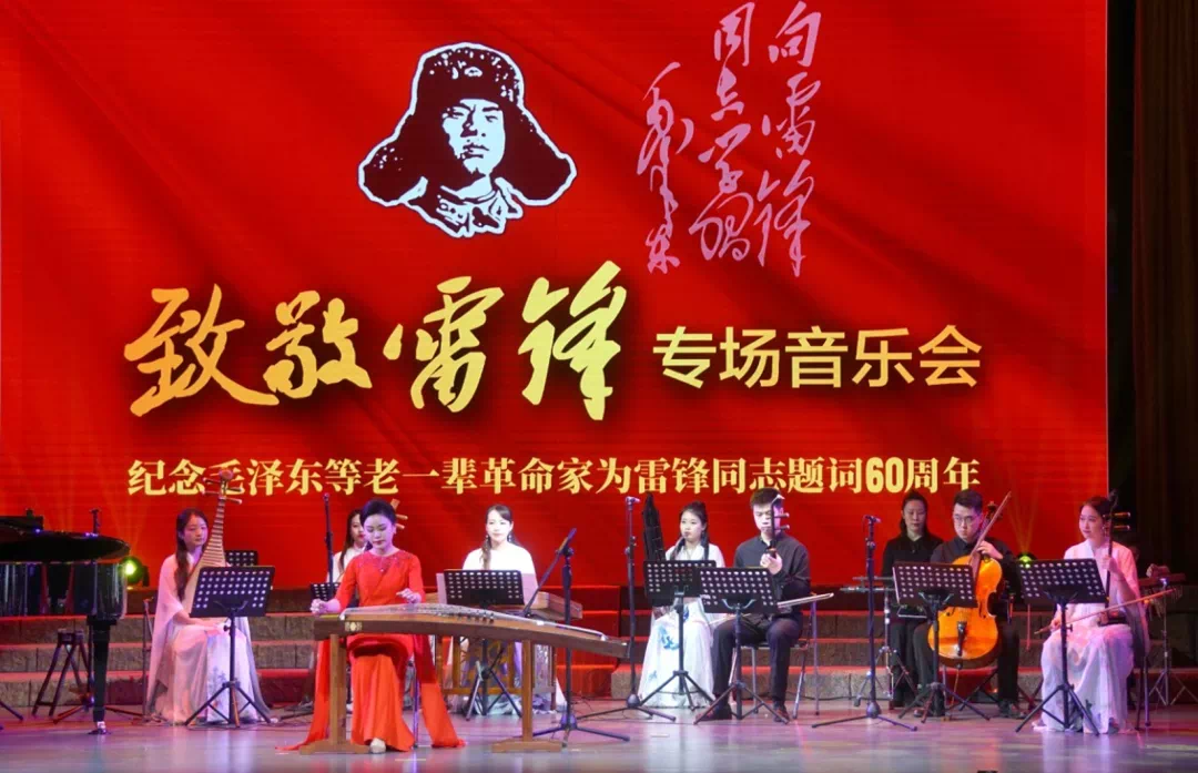 民族器乐系师生积极践行雷锋精神,以“艺术惠民,志愿服务”为主题广泛开展学雷锋系列活动。2月27日,副主任张科威、教师贾晓莉、张优涵、刘明月、邵笑、陈人杰、梅多子在雷锋学院纪念毛泽东等老一辈革命家为雷锋同志题词60周年专场音乐会上演出。