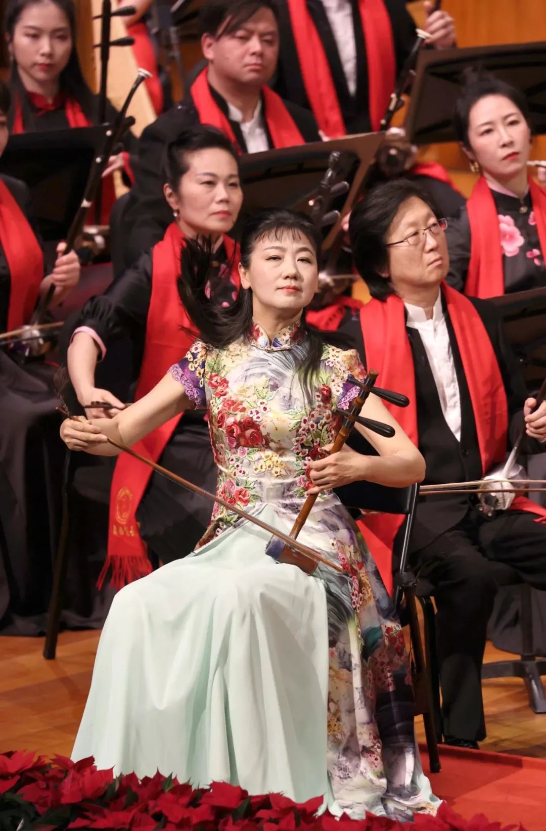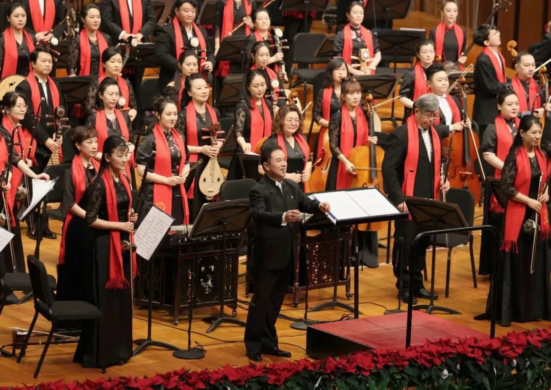 在曲目安排上,本场音乐会仍沿袭以《春节序曲》热闹开篇,《花好月圆》欢腾“合尾”的“传统框架”,这一头一尾的经典组合为音乐会定下喜庆基调,也构成了稳定不变的成分,如此其余选曲便可不拘一格、轮换纳新。较往届而言,本场选曲范围有了进一步拓展,在顺着时间线索摘取传统经典的同时,也兼顾了近年的新创佳作,如创作于2022年的民族管弦乐《湖岸风和》。但从整体可见,“可听性”即是否好听、耐听依然是选曲的首要原则,这源于对观众接受度的考量,契合了音乐会“集大成者、面向大众”的性质。
