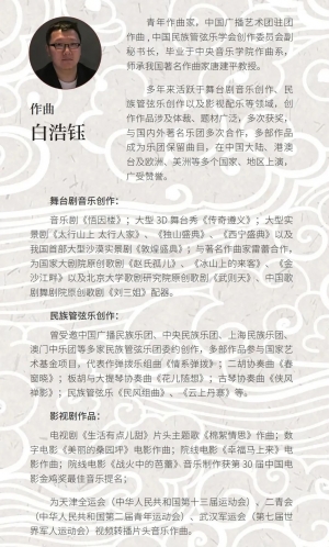 陈思昂 青年作曲家,星海音乐学院作曲系副教授,师从于著名作曲家唐建平教授。中国音乐家协会会员,中国民族管弦乐学会创作委员会副秘书长,中宣部“宣传思想青年文化英才”,国家艺术基金青年创作人才,广东音乐“一荐一”名家荐才行动十大青年音乐家,广东省青年文化英才。