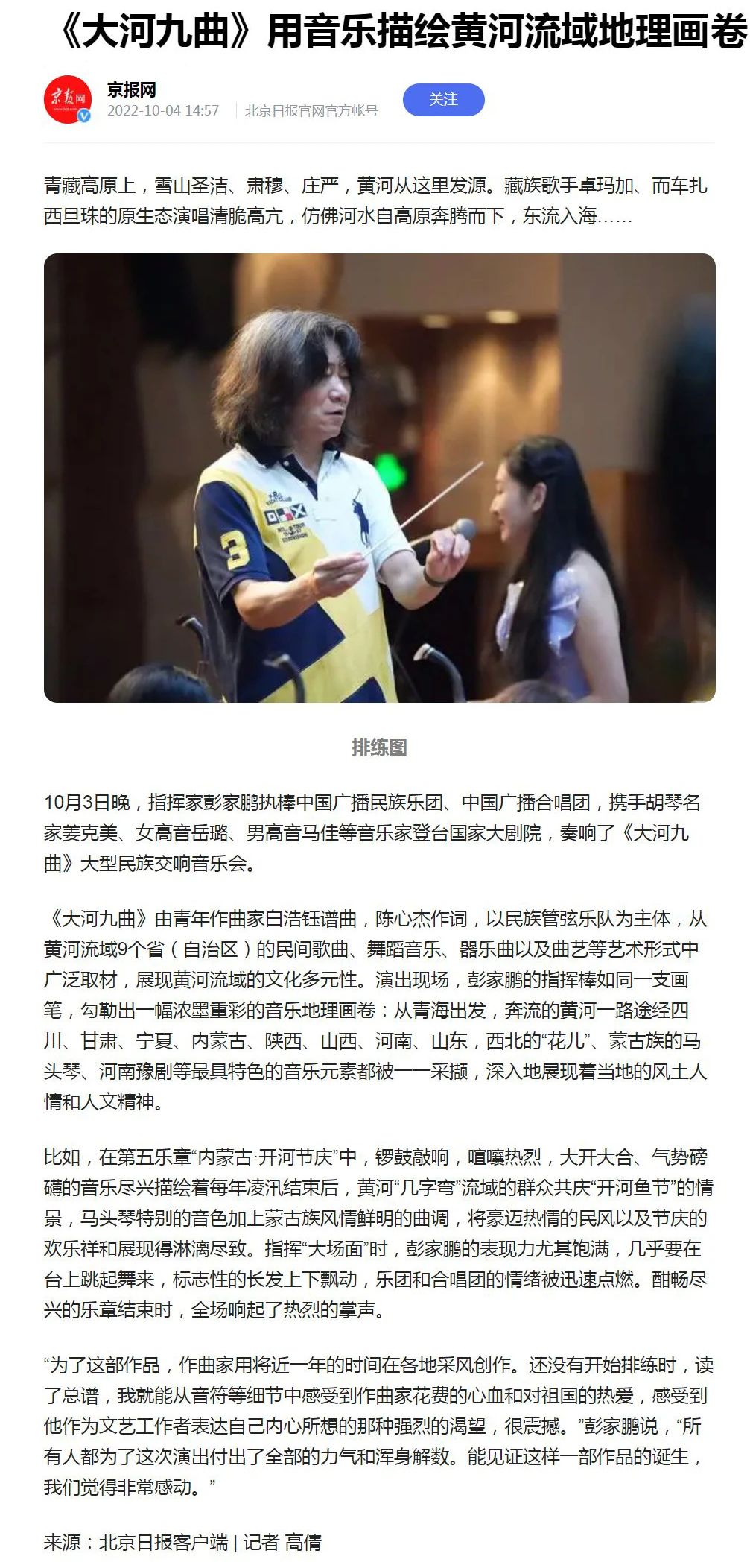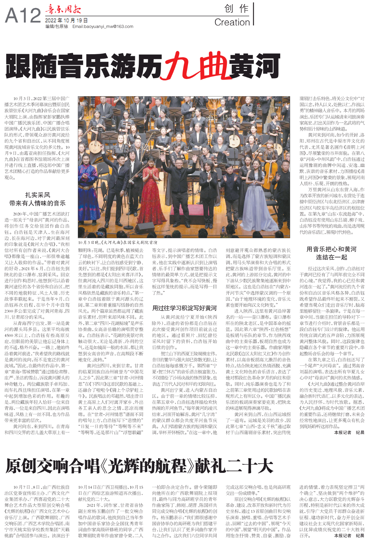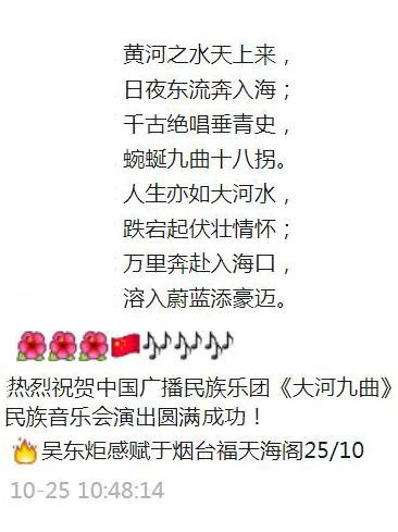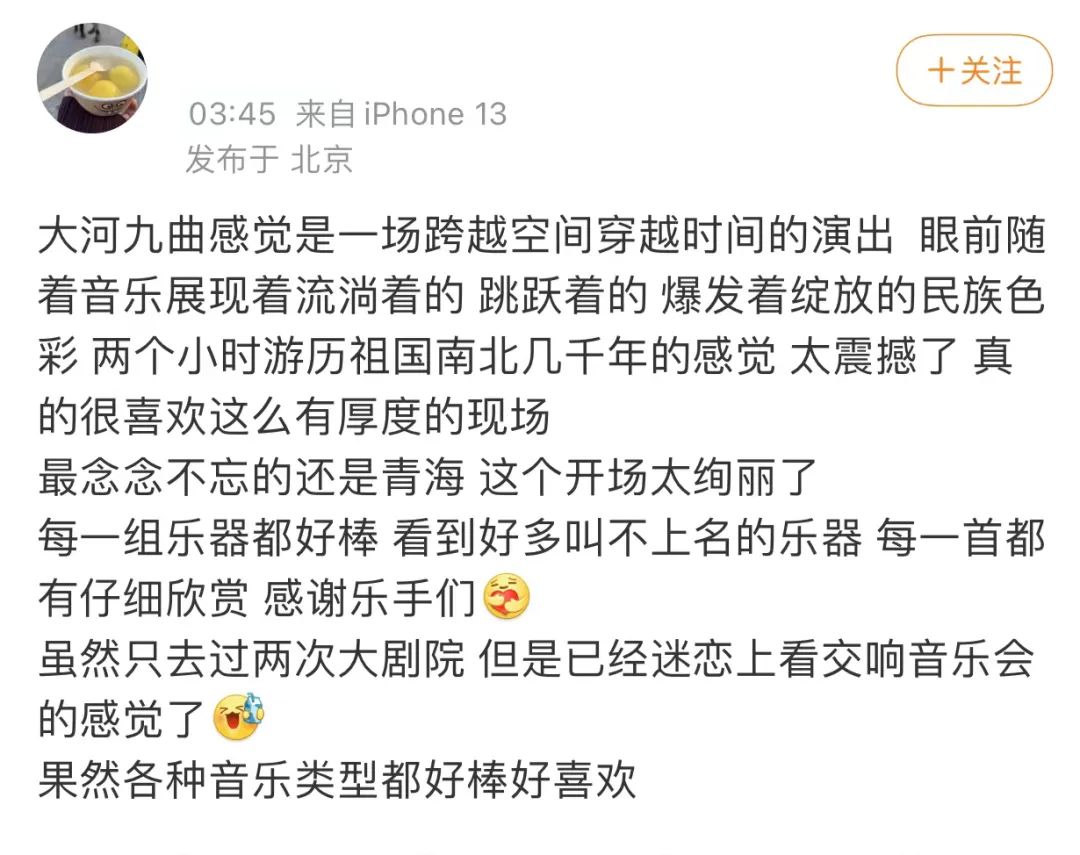 《大河九曲》以其丰富的艺术表现力,对黄河流域九个省(自治区)地方音乐的传神演绎,融合新时代语汇和多元化表达的传承创新,为黄河主题的民族管弦乐作品创作开启了崭新篇章,用优秀的音乐作品为人民抒怀,为时代放歌!