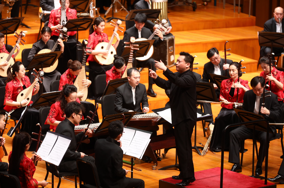 本场音乐会指挥是来自天津歌舞剧院的孙敬凯,他是一位近年来在交响音乐、民族管弦乐、歌剧、舞剧均有成功表现的青年指挥家,这也是他首次和中央民族乐团合作。以他的年龄面对这样一只顶流“国家队”,想必压力巨大。令人惊讶的是他的讲解和指挥并未露出紧张与局促,反而妙语连珠、收放自如。整支乐团全力配合着,为他挥洒自如、精准而饱含激情美感的指挥保驾护航。观众也从一开始礼节性的致意最终变为谢幕时真诚热烈的鼓掌。