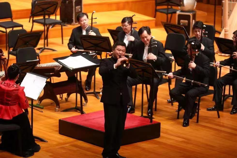 唢呐名曲《百鸟朝凤》(任同祥作)由唢呐演奏家朱大鹏担纲独奏,小型乐队协奏。在唢呐独奏与乐队的交相辉映中,百鸟来朝的纷繁与凤舞九天的恢弘画面清晰可见。可见,中央民族乐团在不断建设与发展民族管弦乐队的同时,也着力让民乐演奏形式返璞归真,持续打造接地气的“本真”民乐小组。这种这种双轨发展的模式非常值得借鉴,也为观众所喜爱。