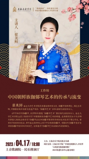 今晚,上音特别邀请延边大学艺术学院民族器乐教研室主任,伽倻琴演奏博士、硕士生导师,中国国家级非物质文化选产项目——“伽倻琴艺术”吉林省级代表性传承人崔美鲜老师,为大家讲授伽倻琴艺术的发展史。