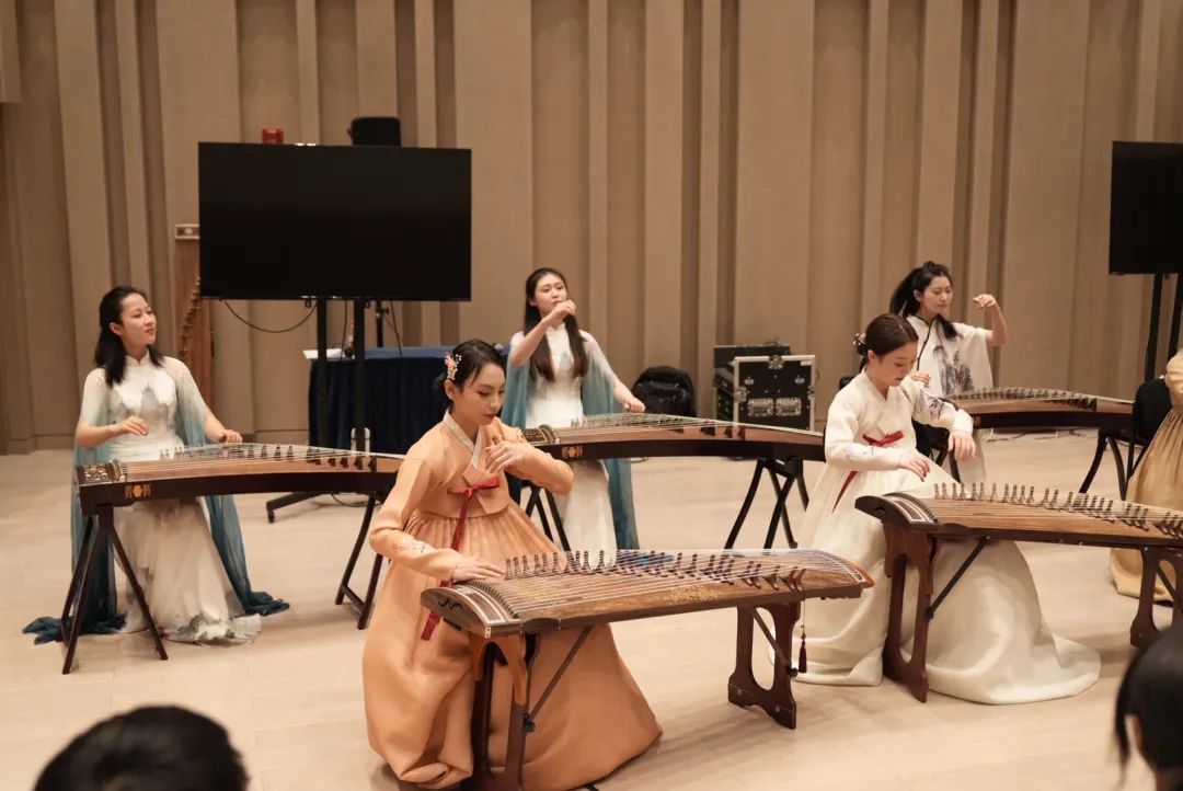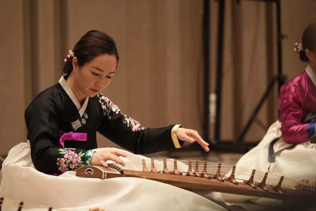 同时,朝鲜族表演者们携手上音古筝学生同台共演伽倻琴和朝鲜民谣,在历史洪流中感受伽倻琴与古筝千丝万缕的关联。