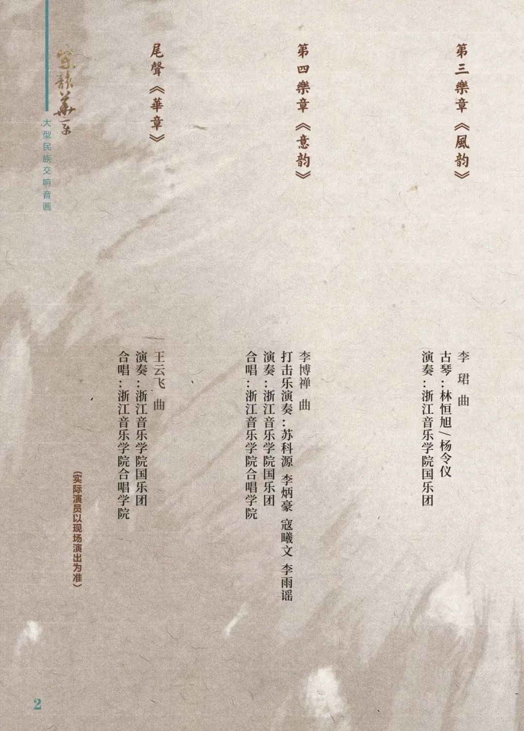 《宋韵·华章》是以“宋韵”主题作为创作动机的大型民族交响音乐作品,由中共浙江省委宣传部、浙江省文化和旅游厅、浙江省文学艺术界联合会指导,浙江音乐学院、浙江省音乐家协会主办,并入选文化和旅游部2022—2023年度“时代交响”创作扶持计划。作品的作曲、文学与演出全部由浙音师生担纲。