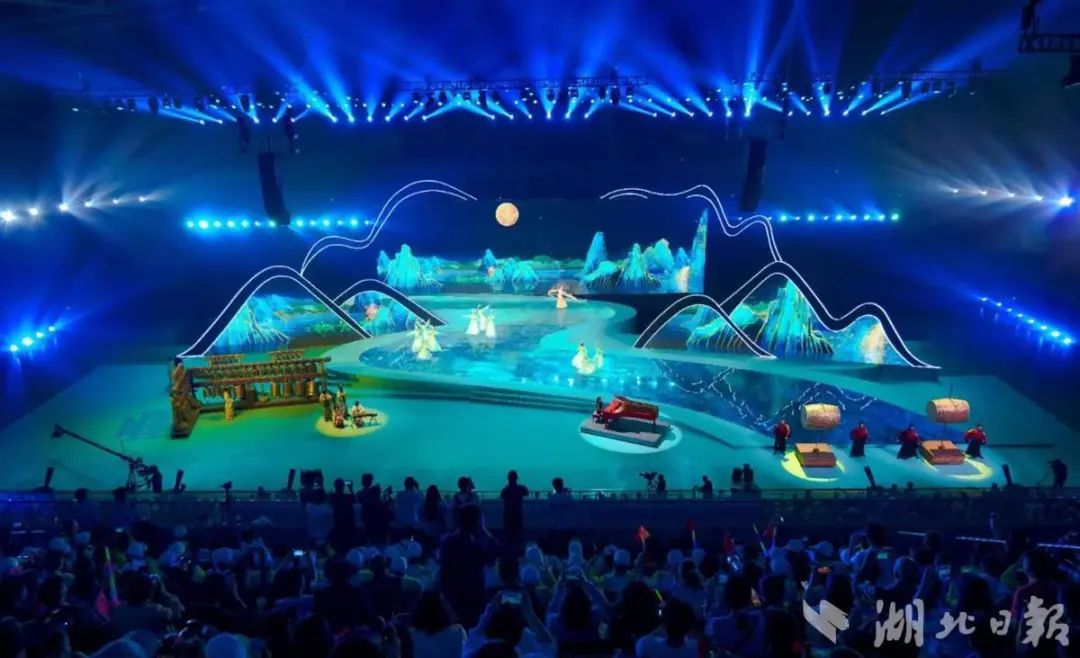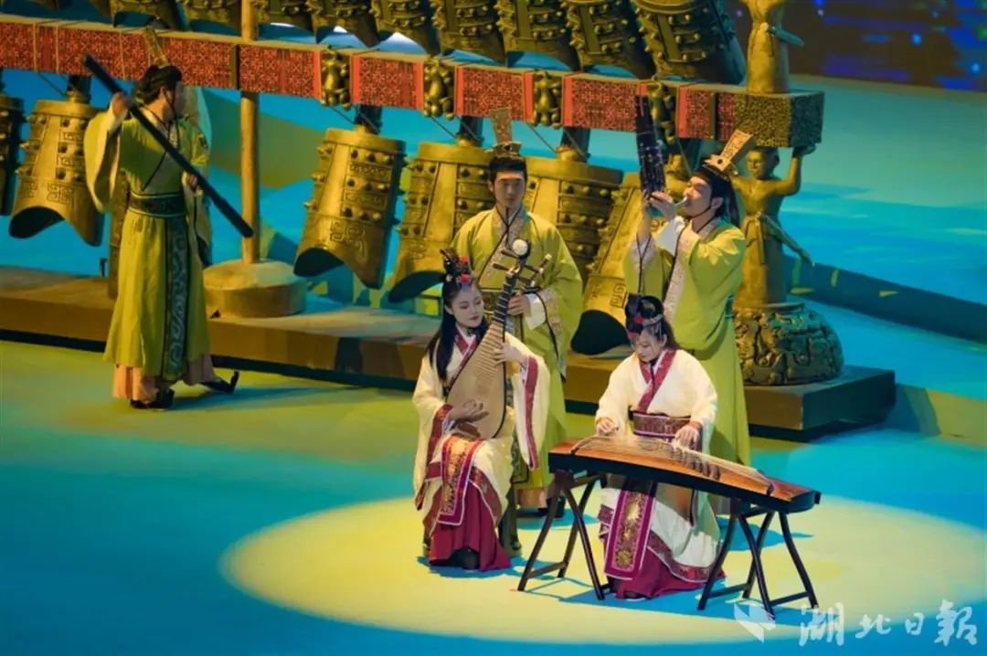 武汉音乐学院青年编钟乐团受邀参加闭幕式文体展演,并在首个节目《千年橘颂》中展示编钟古乐的魅力。