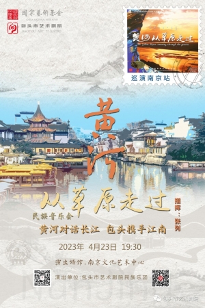 水旱码头包头,历来是中原文明与游牧文明交汇融合之地,由此形成独具特色的地域文化,既有游牧的热情奔放,也有中原文化的温文尔雅,《黄河从草原走过》民族音乐会将草原文化、西口文化、城市文化有机融合,用音乐作画描绘壮丽山河,用乐曲展现风土人情与民族文化,蒙古族乐器与传统民族乐器交辉相应,呼麦与本地民歌共同呈现“黄河从草原走过”!带给南京观众不一样的民族音乐会。